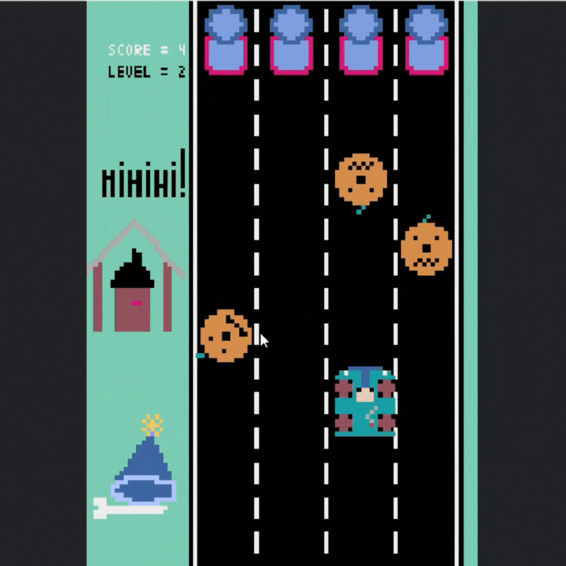 Every time you collect a candy bowl, your score rises by one point, but if a pumpkin go out of the scene (behind you), you lost a point.